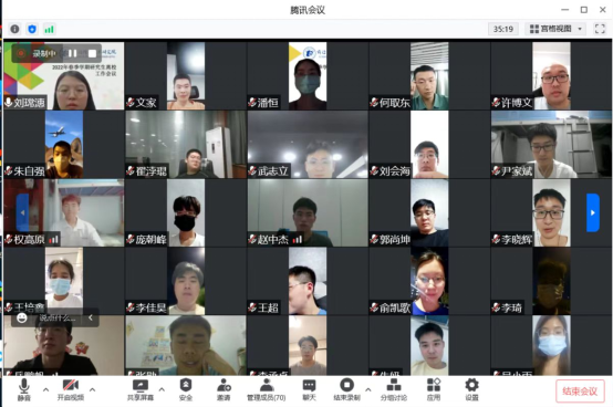 会上,刘长慧对研究生离校流程和要求进行讲解,强调离校期间仍要做好防疫防爆防诈骗等工作,同时与导师保持沟通,要做到“防疫不放松、研学不中断”。随后,潘恒了进行总结。她指出当前疫情防控形势仍然严峻,研究生要严格遵守离校规定,在离校后要保持良好的心态,继续做好课题研究。