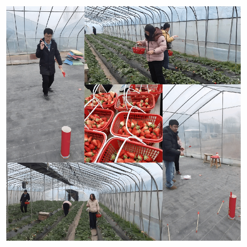 活动伊始,老师们来到草莓种植基地,温室大棚内暖意融融,翠绿的藤蔓间点缀着一颗颗鲜红饱满的草莓,果香四溢,沁人心脾。老师们拿起采摘篮,步入田间,开启了采摘之旅。大家三五成群、分工协作:有的弯腰仔细挑选,有的驻足品尝清甜,有的相互交流采摘技巧,还有的用手机记录下这充满生机与乐趣的瞬间。采摘结束后,趣味互动环节正式拉开帷幕,投壶、套圈赢草莓的游戏将现场气氛推向高潮。大家相互鼓劲、传授技巧,在轻松愉悦的氛围中增进了彼此的感情,现场暖意融融、其乐融融。