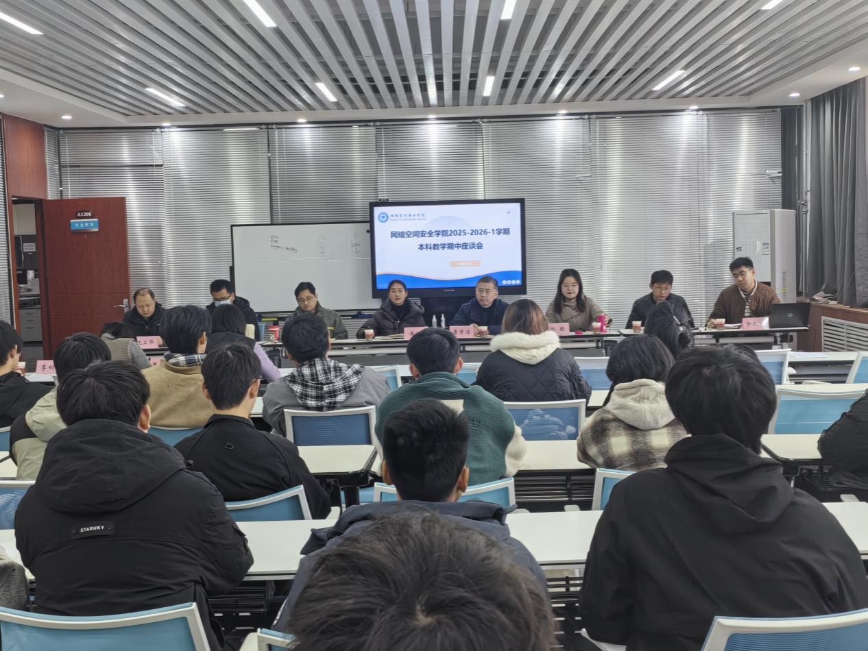 为进一步提升本科教学质量,深入了解学生学习现状与发展需求,网络空间安全学院于12月2日在3号组团楼A1208组织召开2025—2026学年第一学期本科期中教学座谈会。学院党总支书记詹晋浩、执行院长潘恒、党总支副书记、副院长邢颖、教师代表李向东、祝卫华、张龙、姚中原、教学办副主任朱文晶,以及研究生和本科生代表共同参会。座谈会由学工办副主任郭政良主持。