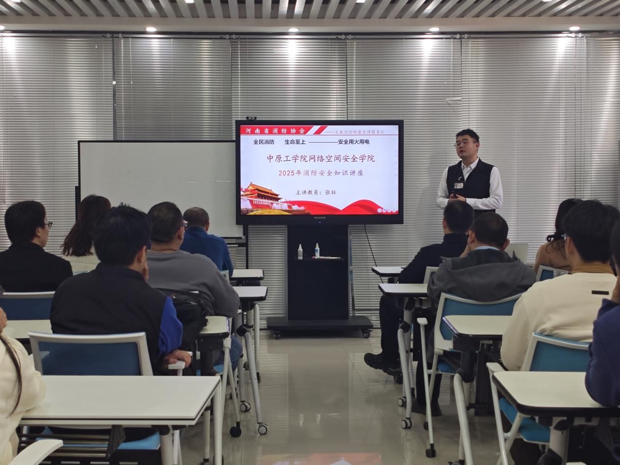 为提升师生消防应急能力,筑牢安全防线。11月4日,网络空间安全学院邀请河南省消防协会义务消防科普宣传服务队教员张钰,在三号组团楼A1208举办了消防安全知识讲座。学院党总支书记詹晋浩、执行院长潘恒、党总支副书记、副院长邢颖及全体教职工、本硕学生共同参与学习。