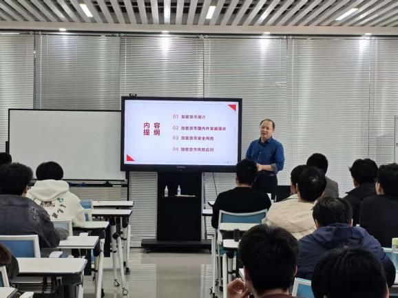 祝卫华围绕加密货币介绍、国内外发展现状、安全风险及风险应对四大方面展开系统讲解:先阐明其本质是区块链与密码技术融合的去中心化数字货币,具去中心化等特征;继而对比国内外发展现状,剖析技术瓶颈、市场波动、合规缺失、操作漏洞等风险;最后针对学生给出方向——强化技术研发、培育复合能力、推动行业自律,并关注法定数字货币进展。讲解助力学生搭建知识框架,提升风险辨识力,明晰综合型人才学习成长路径。