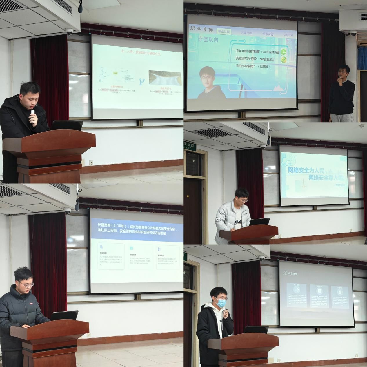 比赛开始,十位选手赛选手依次从自我认知、职业定位、发展路径、评估调整等多个维度,全面展示了各自职业规划报告。评委老师则结合网安行业需求、规划方案可行性、专业技术能力适配性等方面进行点评,引导选手进一步深化对职业发展的思考,完善规划细节。